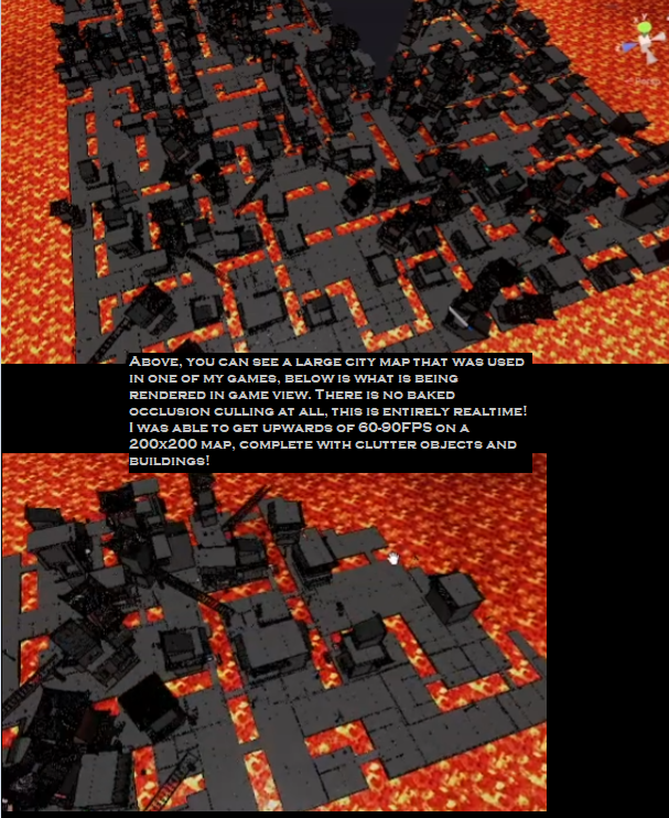 This script allows for much higher FPS in games with large maps. I have used it in my own games myself, and I have gotten significantly better performance no matter what assets I use. This is very useful for maps that you generate at runtime and cannot bake occlusion culling in the editor. For Unity only. Tested and working great in Unity 6, but I have not tested this in older versions.